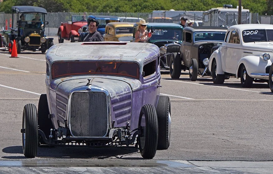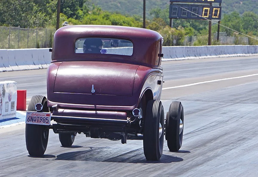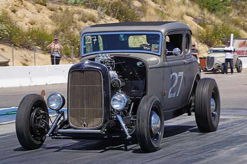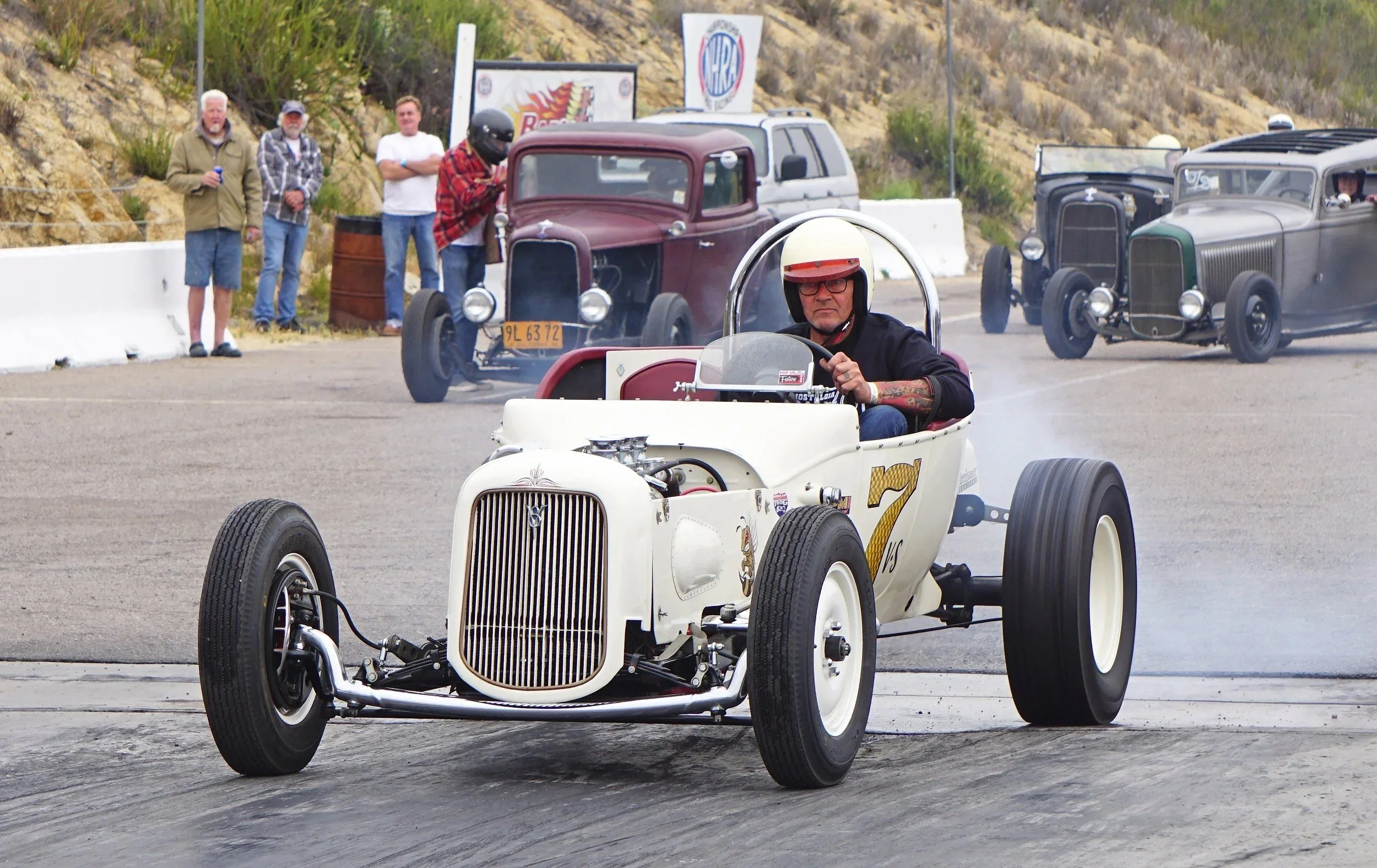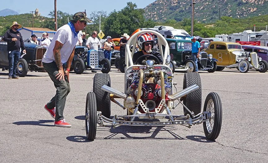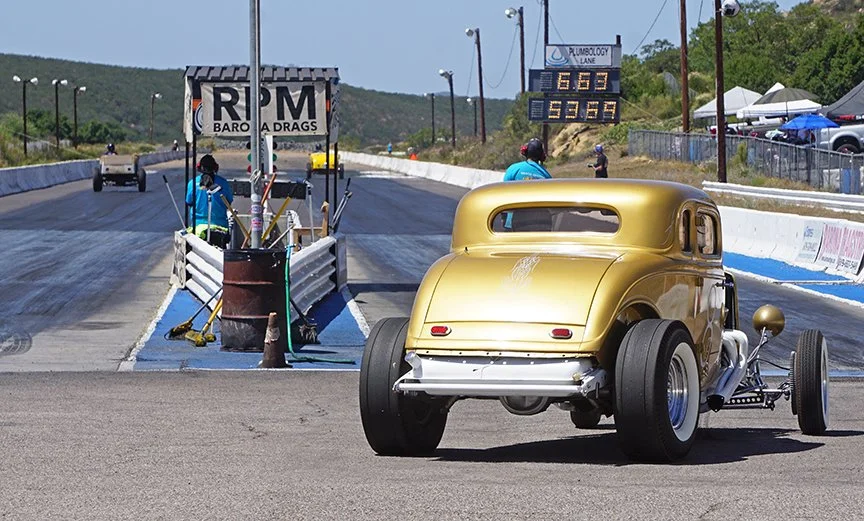 This year, my compadre Kev Elliott and I decided to race ‘Lil’ Shitter’ my barn find ‘32 with a ‘27 Roadster body and a ‘40 flathead V-8 built by Mike Herman at H and H Flatheads. Built in the 1940s, it’s not a race car by any stretch of the imagination but having attended Rømø in Denmark, the Hot Rod Drags at Santa Pod in England and Pendine Hot Rod Races in Wales I figured why not check Barona off the bucket list? Beyond fitting a new E-Fire electronic ignition from Stromberg, and checking the oil, we did no prep and as a result we didn’t go very fast but we had a huge amount of fun which is what RPM Barona is all about.